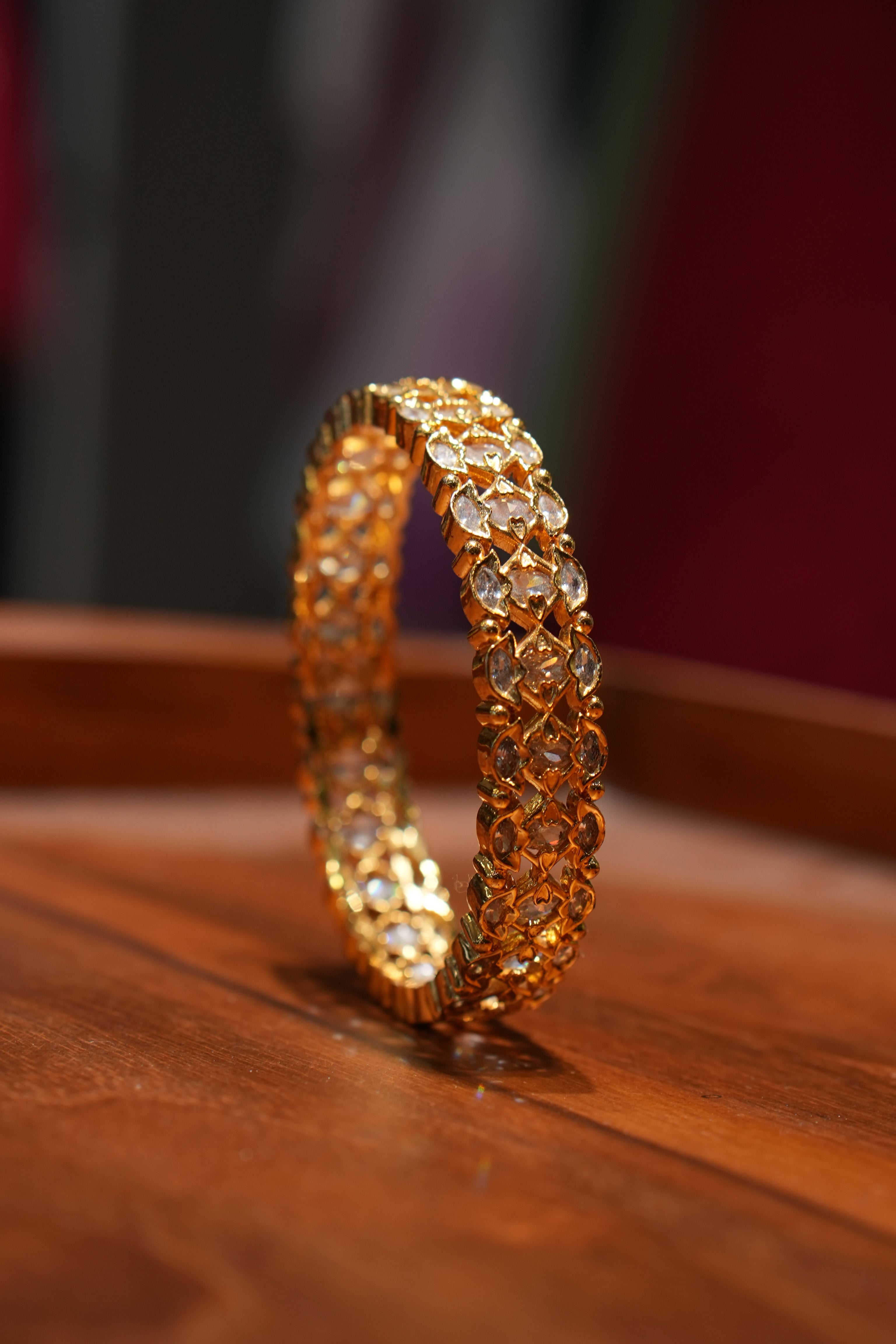 Golden colour Bangle with rich design and stone work all over    Disclaimer : The colours you...