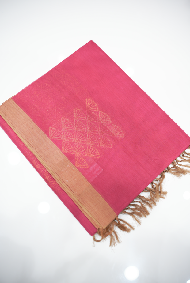 Pink colour cotton saree with rich zairy design on body and chiku colour borders
