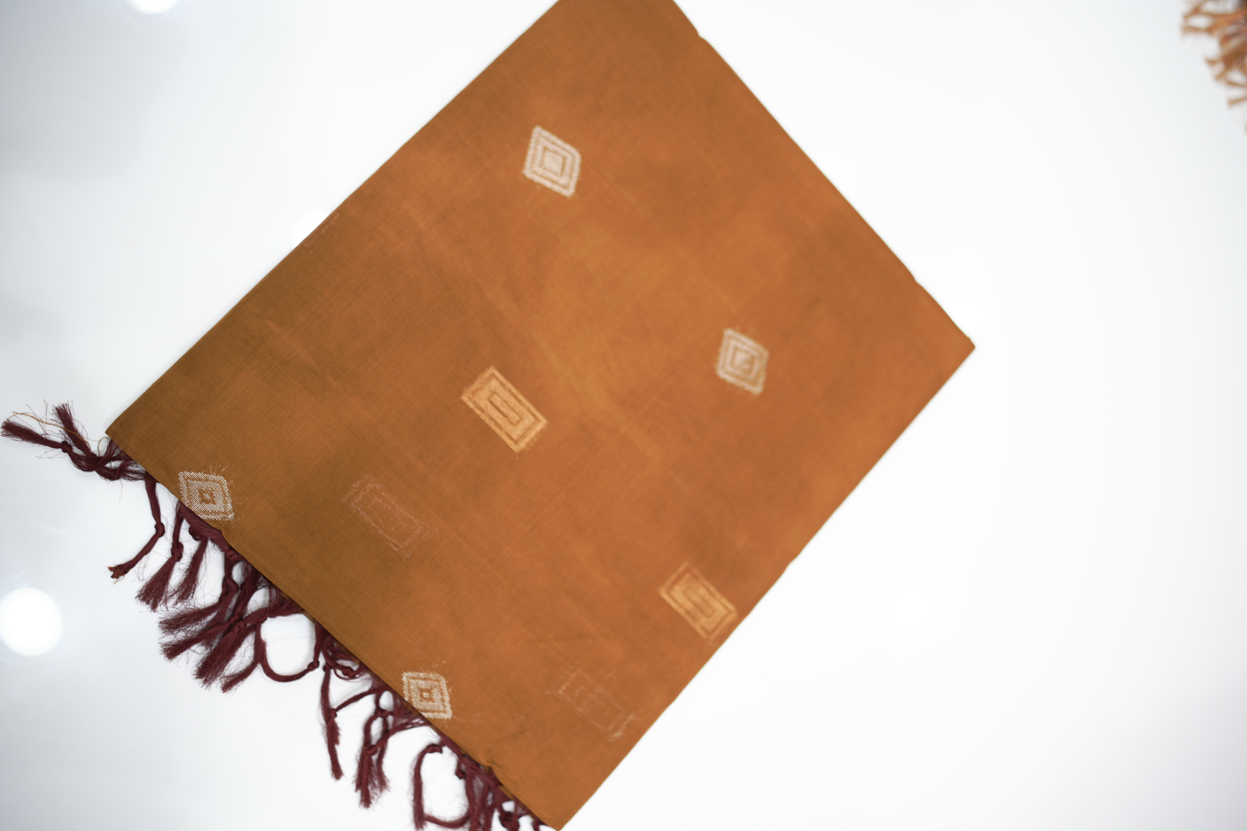 Biscuit colour cotton saree with rich zairy design on body and Brown colour borders