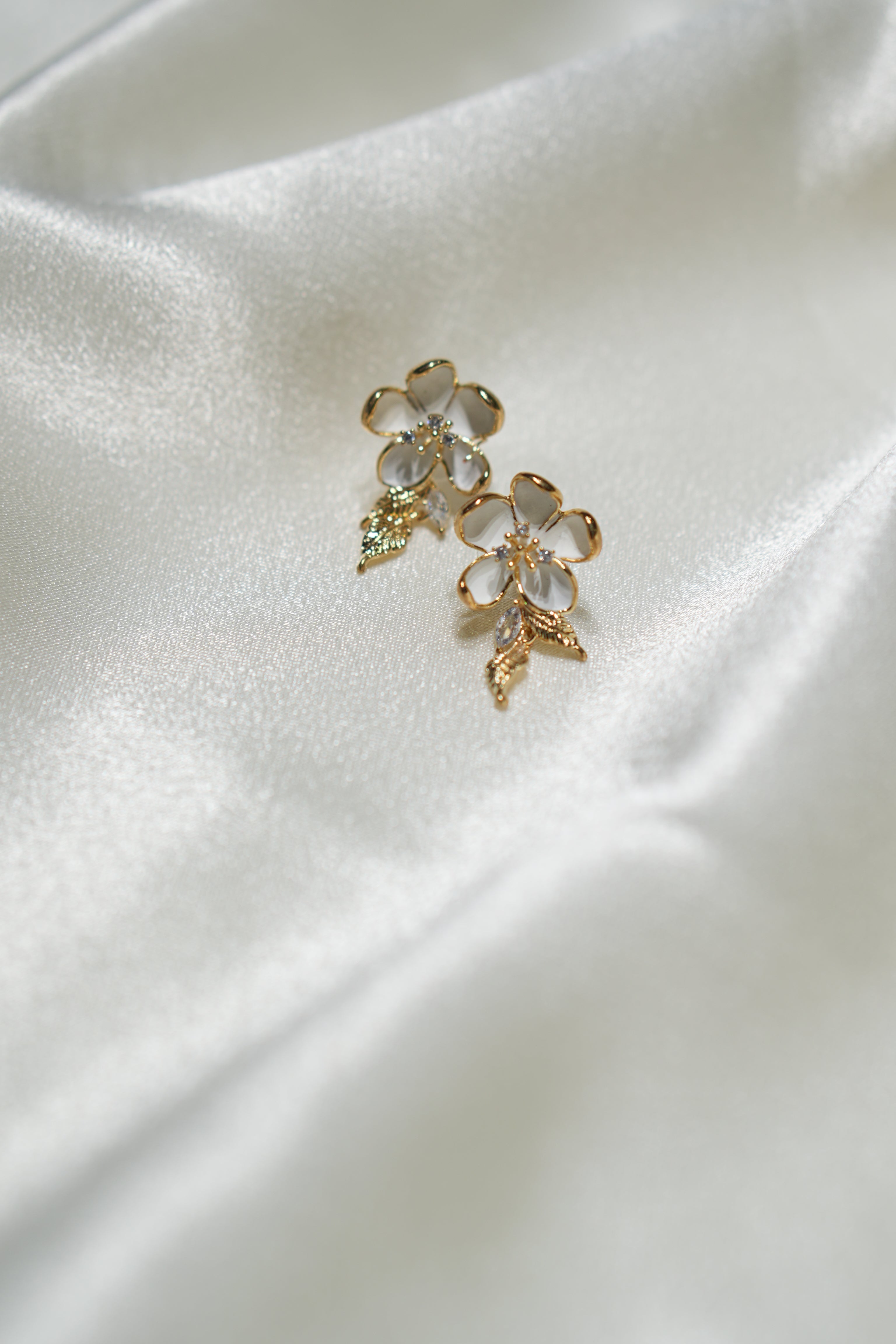 Golden colour earring in Floral design with small stone work inside and hanging