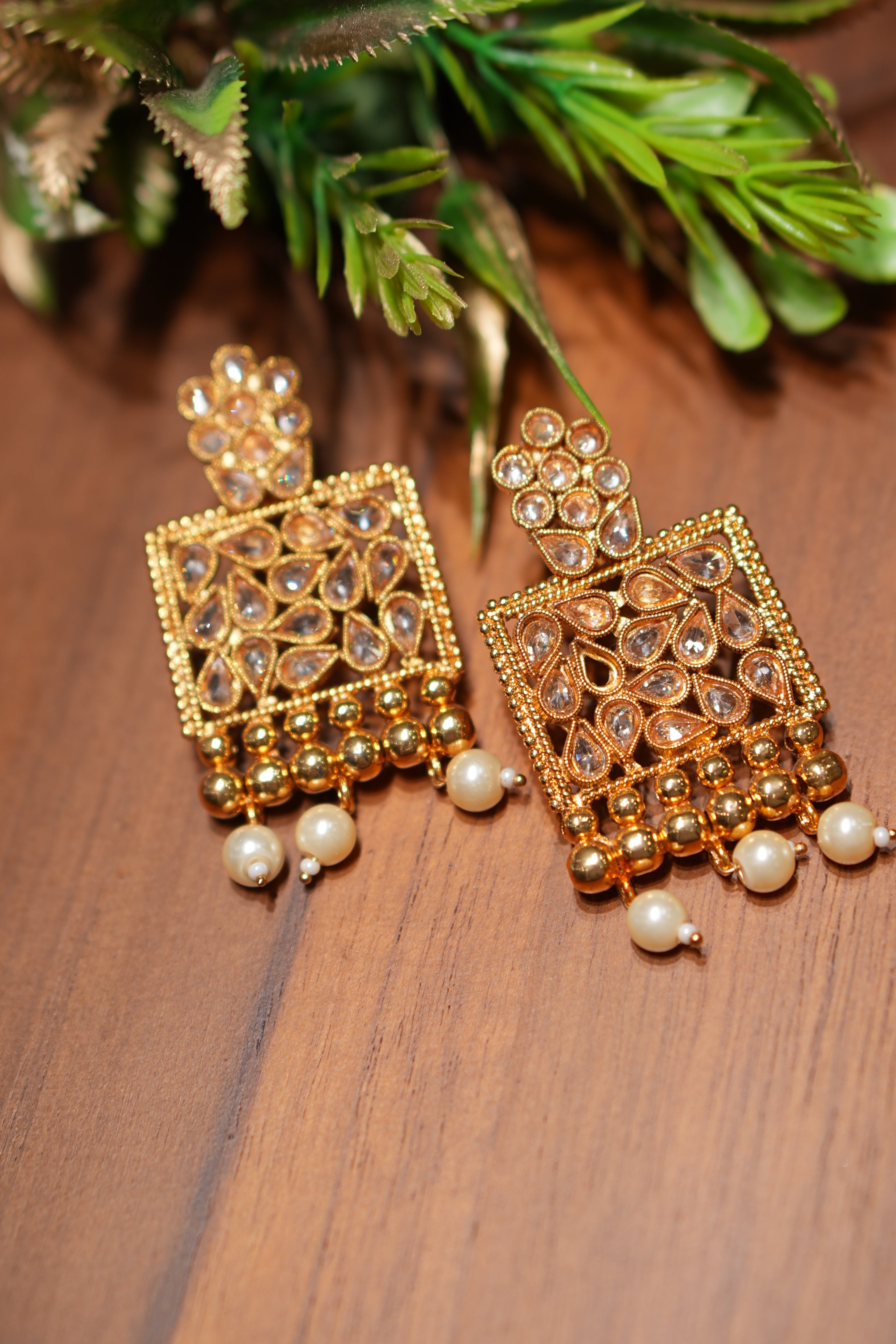 Golden colour earring with small hanging and stone work   Disclaimer : The colours you see on...