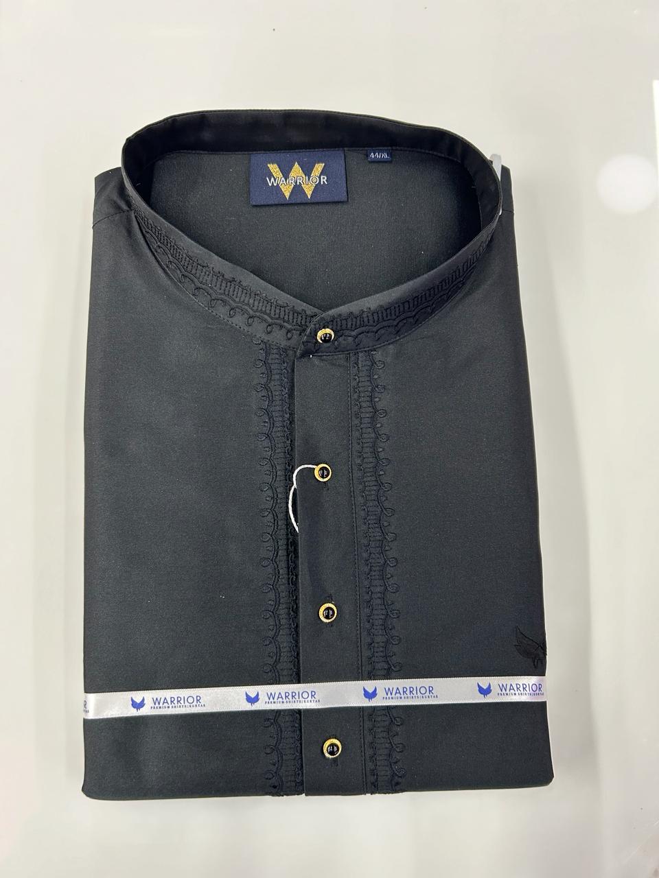 Jet Black colour kurta Chines collar with thread work on yoke portion and work on collar. full sleeved kurta