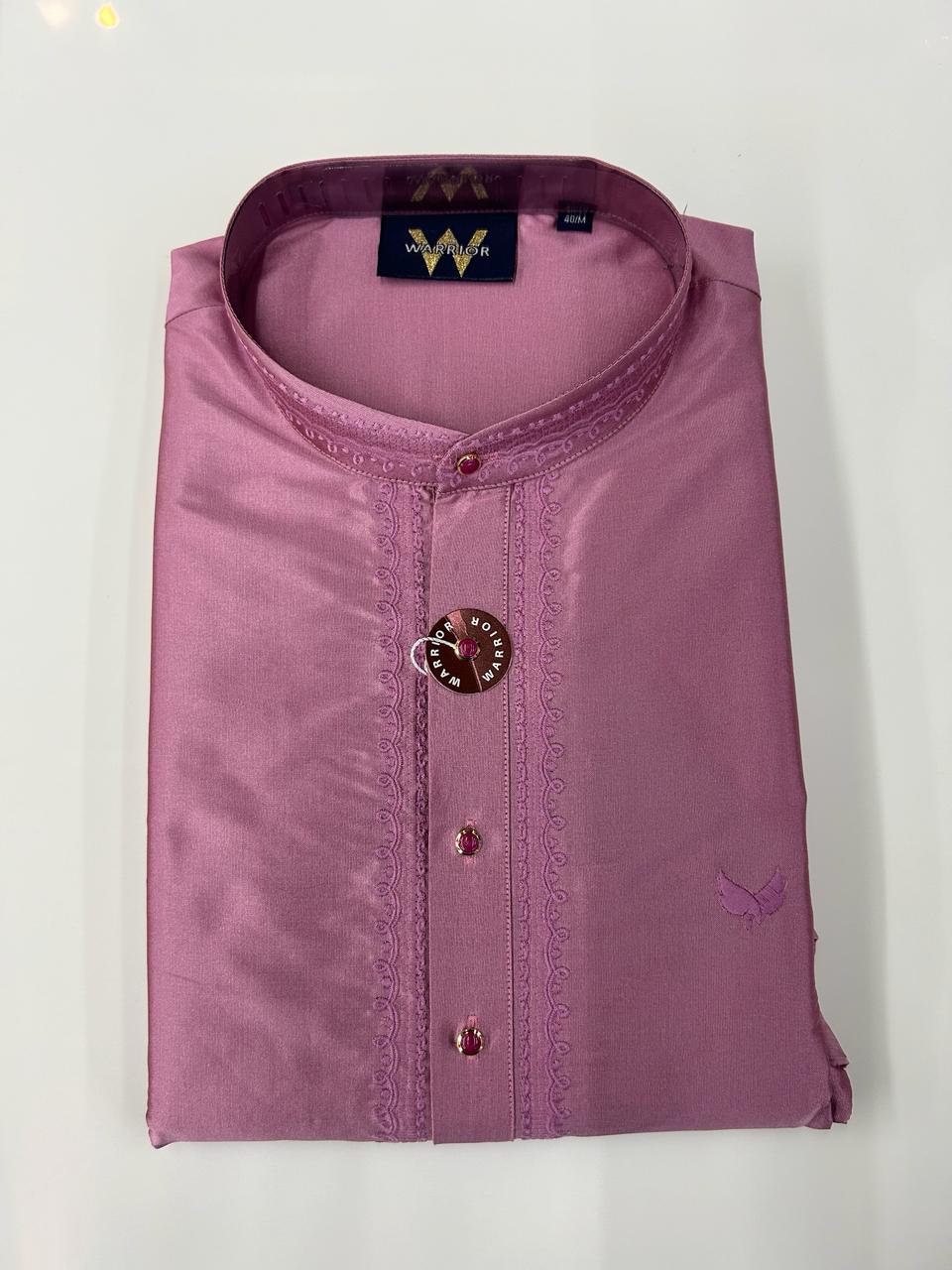 Onion pink colour kurta Chines collar with thread work on yoke portion and work on collar. full sleeved kurta