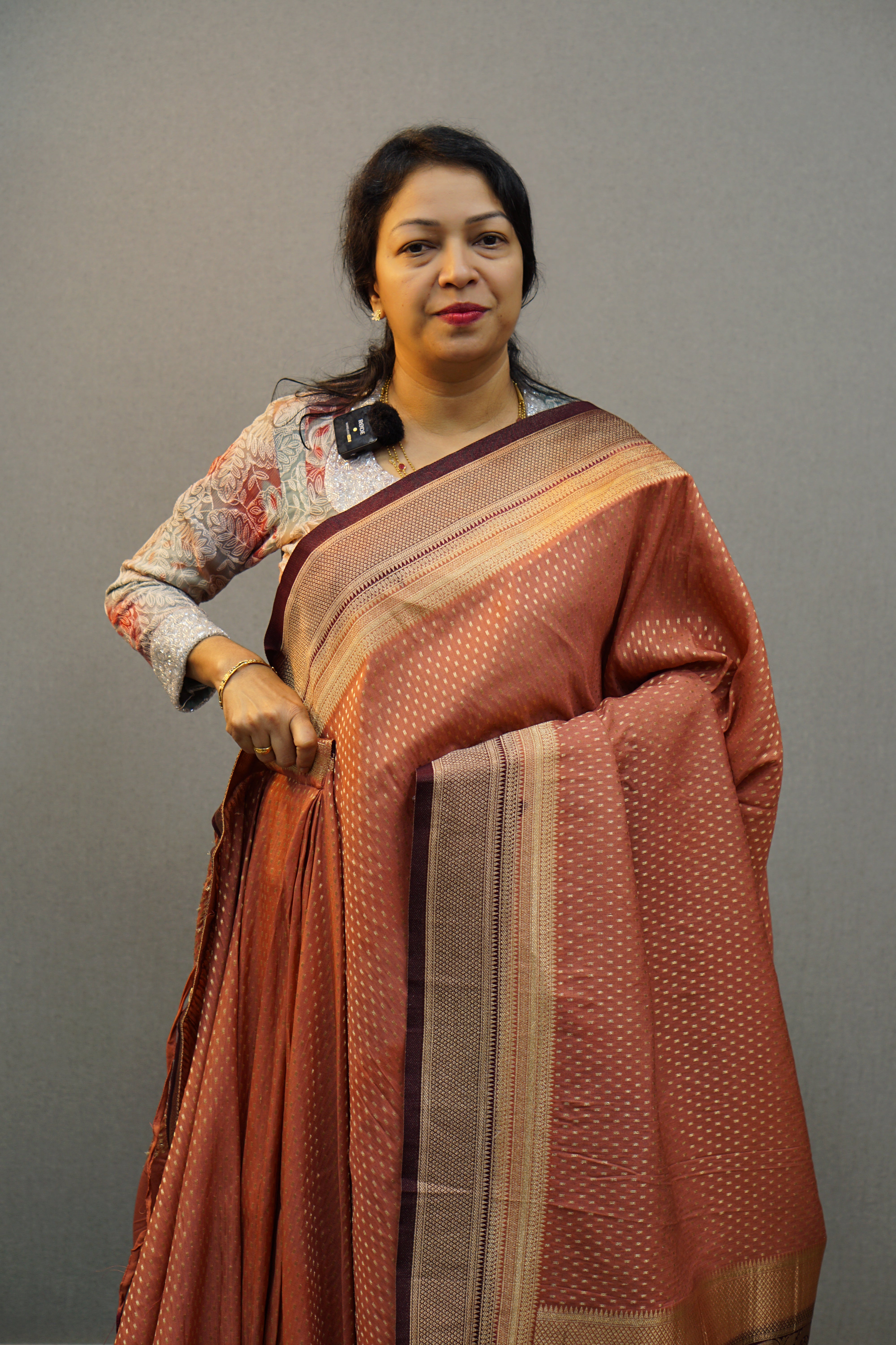 gorgeous Dark onion colour contrast with marron saree with small butta design on body with marron with banarasi design in rich zairy design on body and pallu
