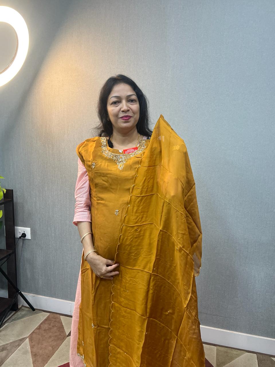 Mastered colour salwar suit set with hand work on yoke portion and small butta like design on body dupatta same colour with butta design
