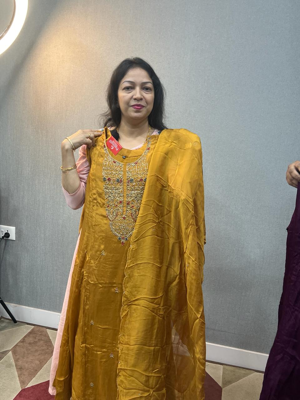 Mastered colour salwar suit set with hand work on yoke portion and dupatta same colour with butta design